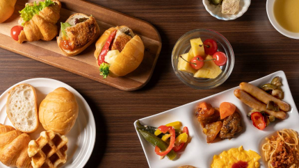 您可以把「小杂鱼炸排」夹在自己喜欢的面包里,或者在特制咖喱中加入蒸蔬菜做成「蔬菜咖喱」,也可以将本酒店引以为傲的沙拉吧与赞岐乌冬面搭配制作「沙拉乌冬面」等,如何享用由您自由选择。